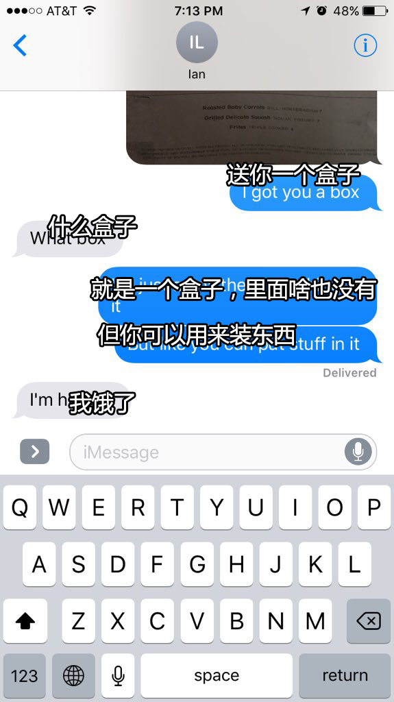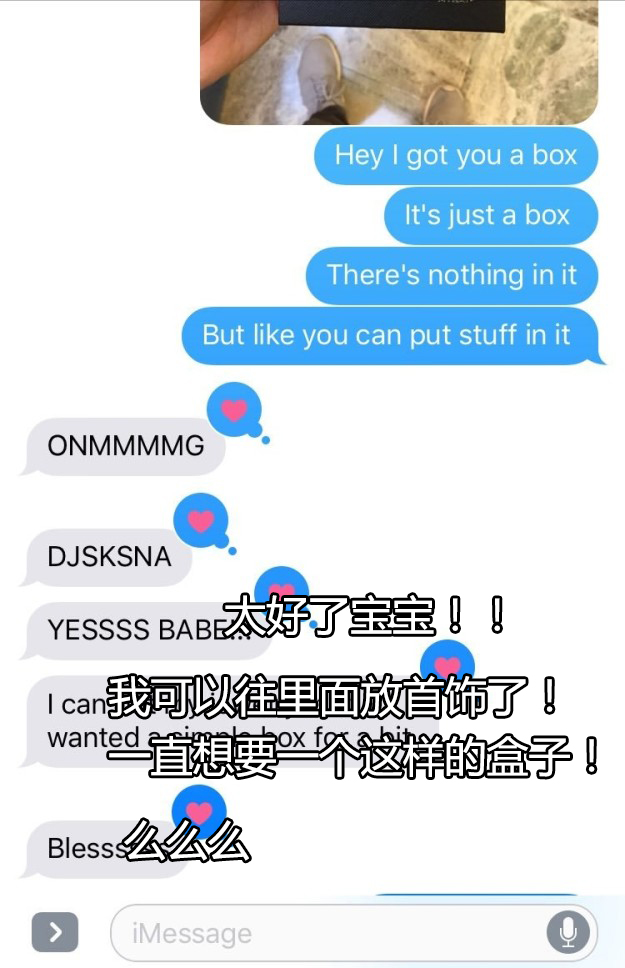 女生们啧啧称奇的同时,男生们都跑去给女朋友送空盒子了,发过去的信息也和Braxton小哥一样一样的。