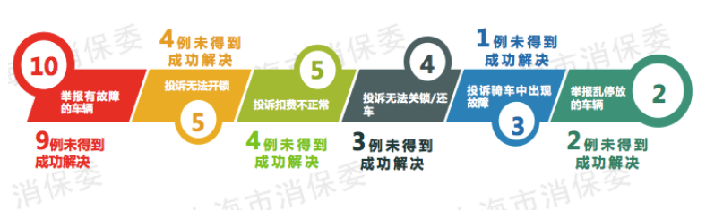 根据上海消保委的调查,共享单车存在不少问题:乱停放现象常见、车辆维护不及时、充值余额退款不明确、保险保障未明示、客服电话难打通。