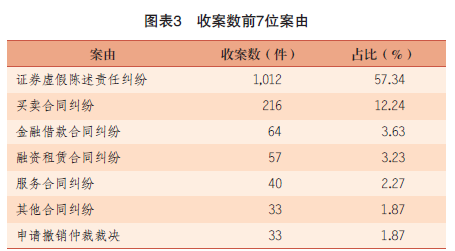 在涉自贸区金融纠纷案件中,证券类纠纷数量持续高位攀升,其中尤以证券虚假陈述责任纠纷案件为主,在涉自贸区金融纠纷案件中占比较大,达92.59%。
