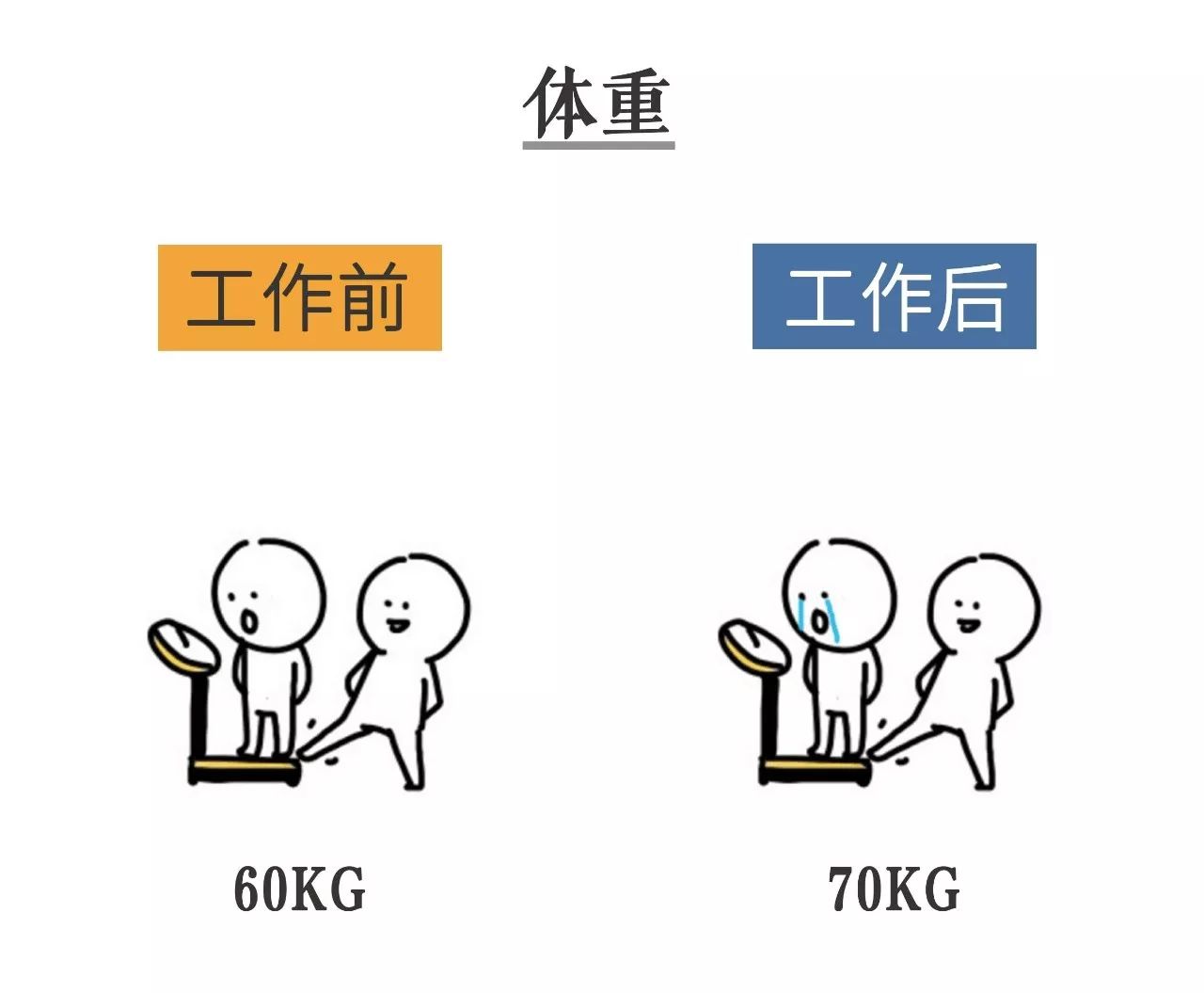 “嗯,我还记得当时那个身材一级棒的我;工作使我肥胖,唯有泪千行。身材走样,肚腩肥大,心情很沉重。 ”
