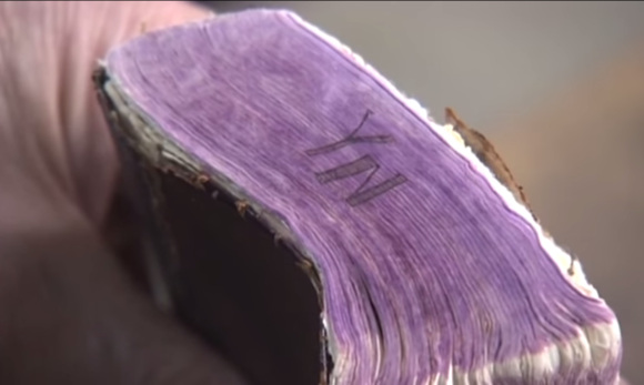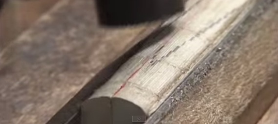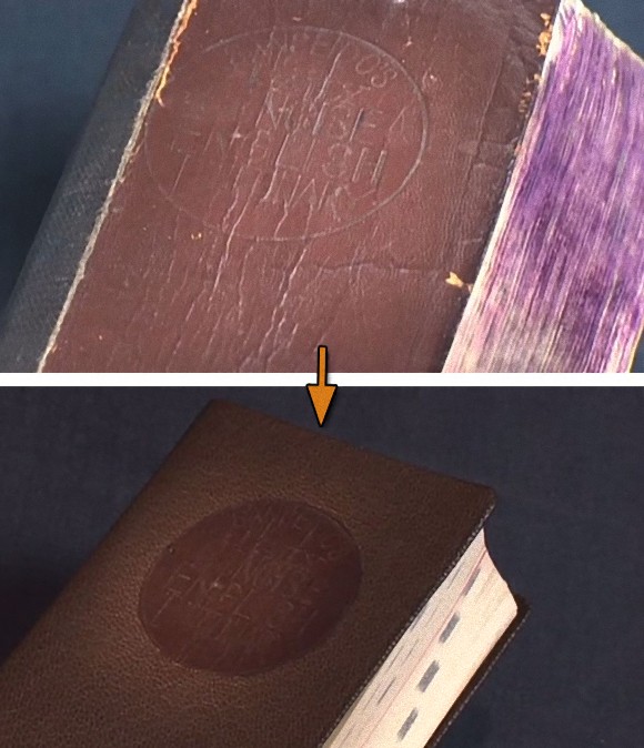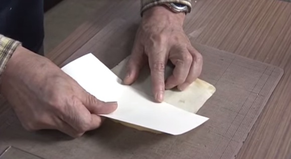 岡野畅夫开始了修复工作。他首先将书脊处的胶水削去: