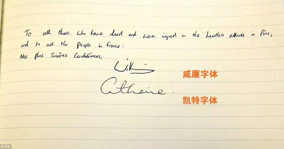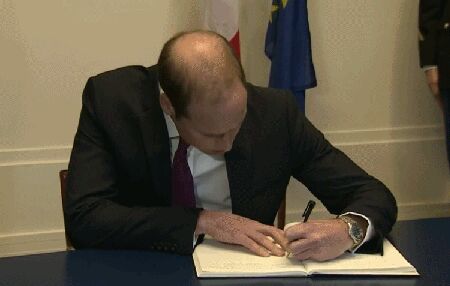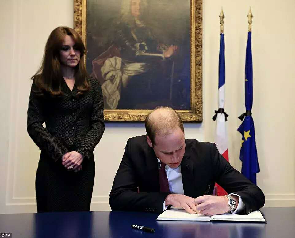 昨天,威廉王子携妻子凯特来到法国驻英国大使的家里,为在巴黎恐袭下丧生的人写下了吊唁词。只是,威廉王子这次在公众面前献上墨宝的全过程充满了各种“亮点”。。。