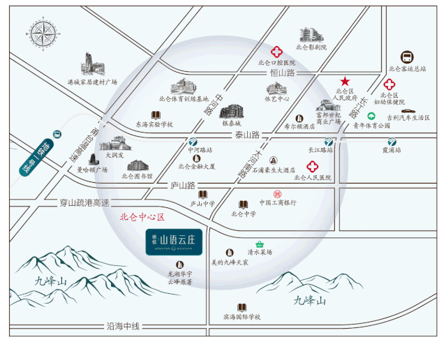 生活的理想,是为了理想的生活。在北仑这块土地之上,德信·山语云庄占据有利的地段优势,汇聚商业、教育、文娱、公建多重城市高阶精粹资源,一首歌的时间,即可迅达北仑任何一个大型配套,享受出则繁华入则宁静。约3公里塔尖生活圈,为城市菁英们,构建起一种澎湃丰盈的理想生活。(三大学校:北仑中学、庐山中学、东海实验学校;临北仑图书馆、体艺中心、北仑区政府、北仑人民医院等)