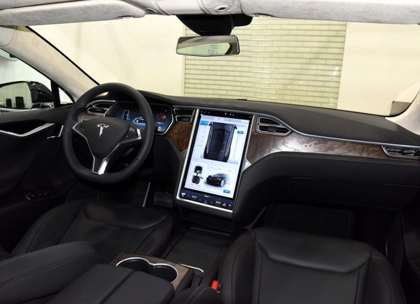 而坐进这辆新 Model S时,首先吸引眼球的不得不提那个1080x1920分辨率的巨型显示器,车灯、天窗、多媒体、空调等众多功能控制都可以通过显示屏操作实现。极简的中控台被大面积的翻皮毛,钢琴烤漆和真皮覆盖。