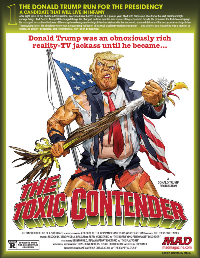 这一切都发生在特朗普赢得大选之前。而面对大选之后新鲜出炉的“2016年度20个最愚蠢的人事物”排行榜,Mad杂志的编辑们却左右为难。