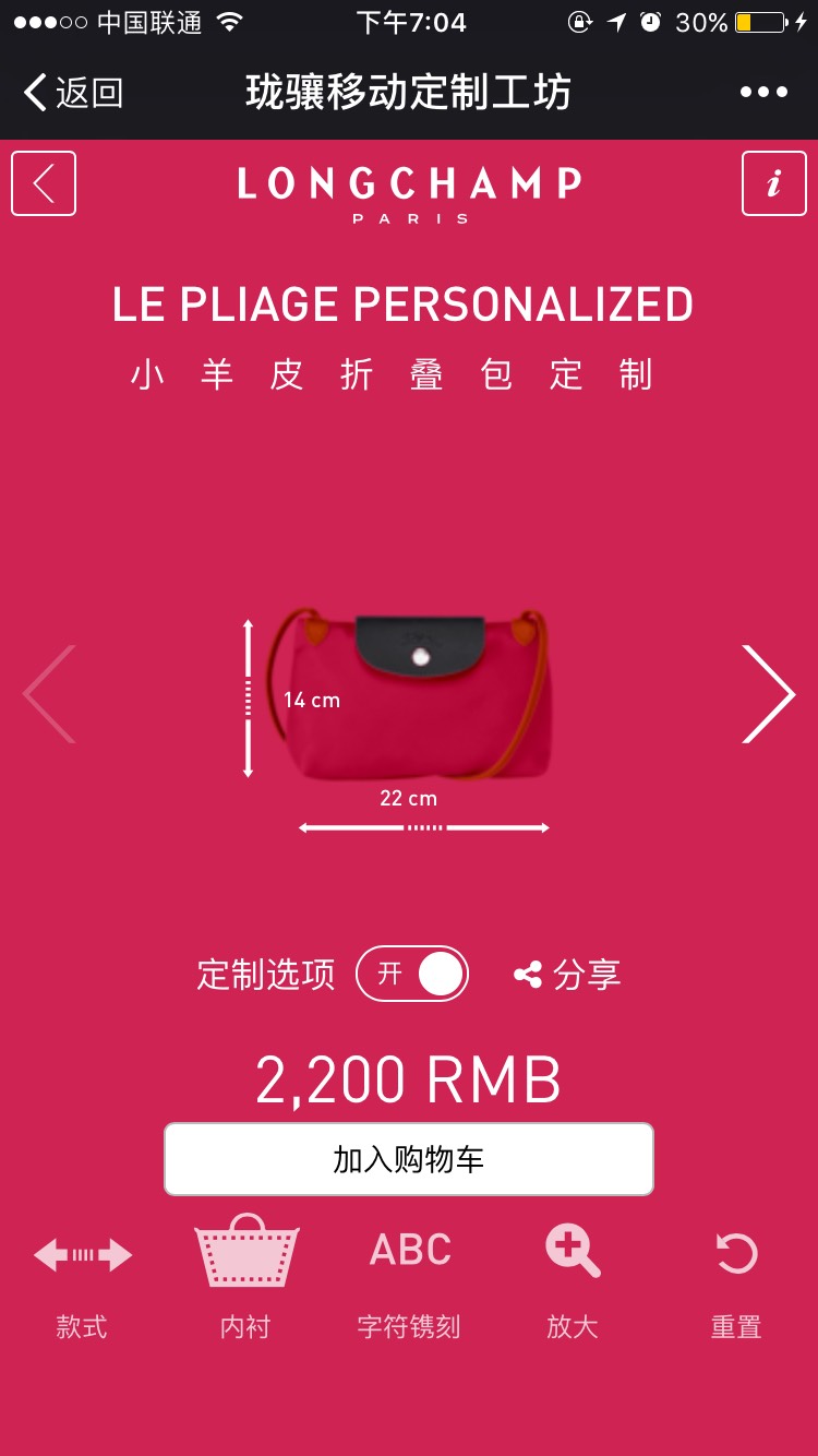 该微信媒体中心是由Longchamp珑骧中国内部团队和品牌长期合作的一家数字媒体机构共同完成,后者提供了搭建该平台的技术服务。而在今年5月,Longchamp珑骧亦在该机构的技术支持下,于官方微信账号上推出了涉足电商领域的首个项目:微信线上定制Le Pliage折叠包服务。