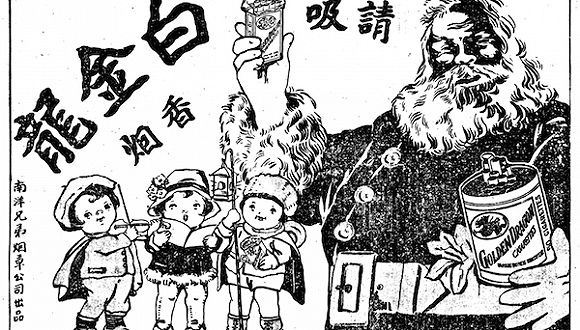 更何况,圣诞老人实在是无缝接地气。它一会出现在中国补药广告,一会从背上的包袱里掏出各种商品,一会出现在烟标上教你享受西式生活,一会在中堂画里扮演寿星老头,像圣诞老人这样万能的中国神仙,实在是没有。