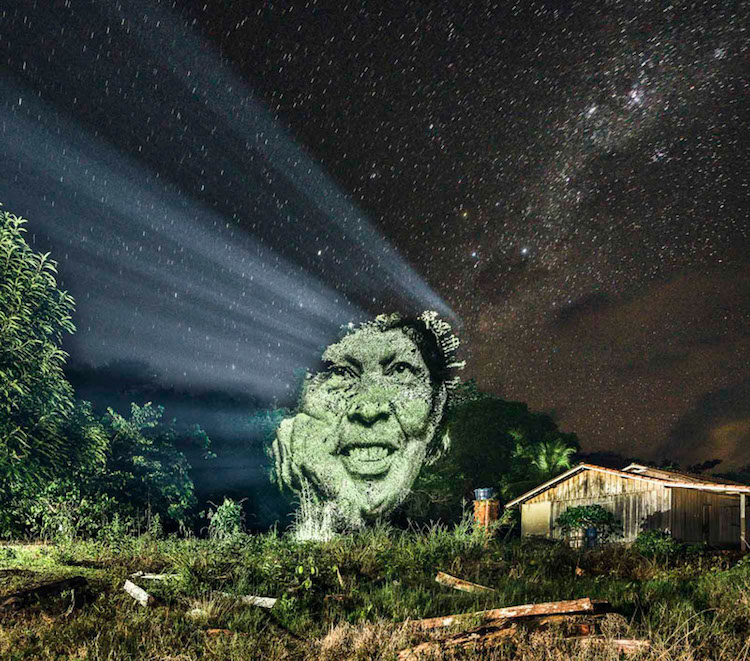 为了引起人们对亚马逊的注意,艺术家Philippe Echaroux创造了一个流血的森林,当地土著Suruí部落成员的头像被投放到树木上,最终成功引起了人们的注意。
