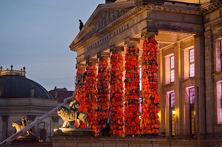 因其激进的艺术而闻名,Ai Wei Wei对社会事件表态并不陌生。这个#救救航海者系列用1400个明亮的橙色救生衣大胆地覆盖了德国柏林音乐厅的支柱。此外还有一个挂着标签的救生艇。这个系列呼吁大家重视寻求庇护的难民。