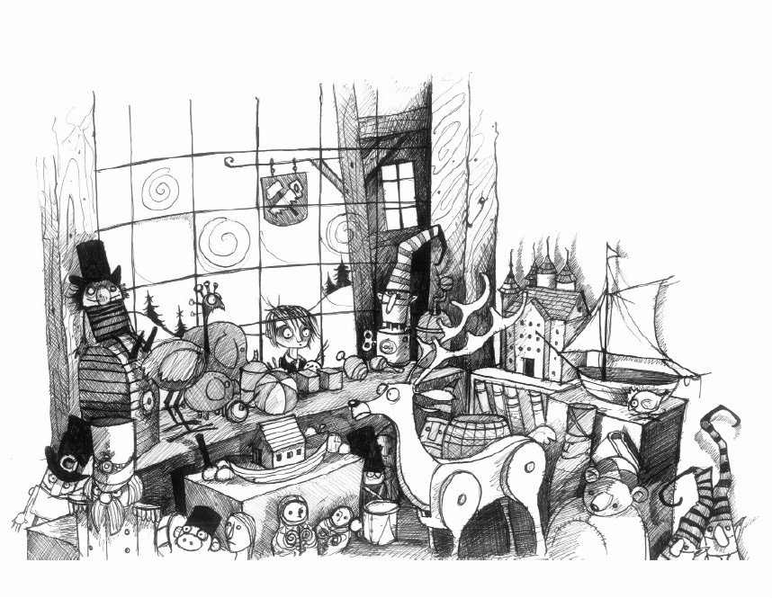 “爸爸!看!一个木头驯鹿!”尼古拉斯把鼻子贴在那家玩具店的玻璃上,激动地说。