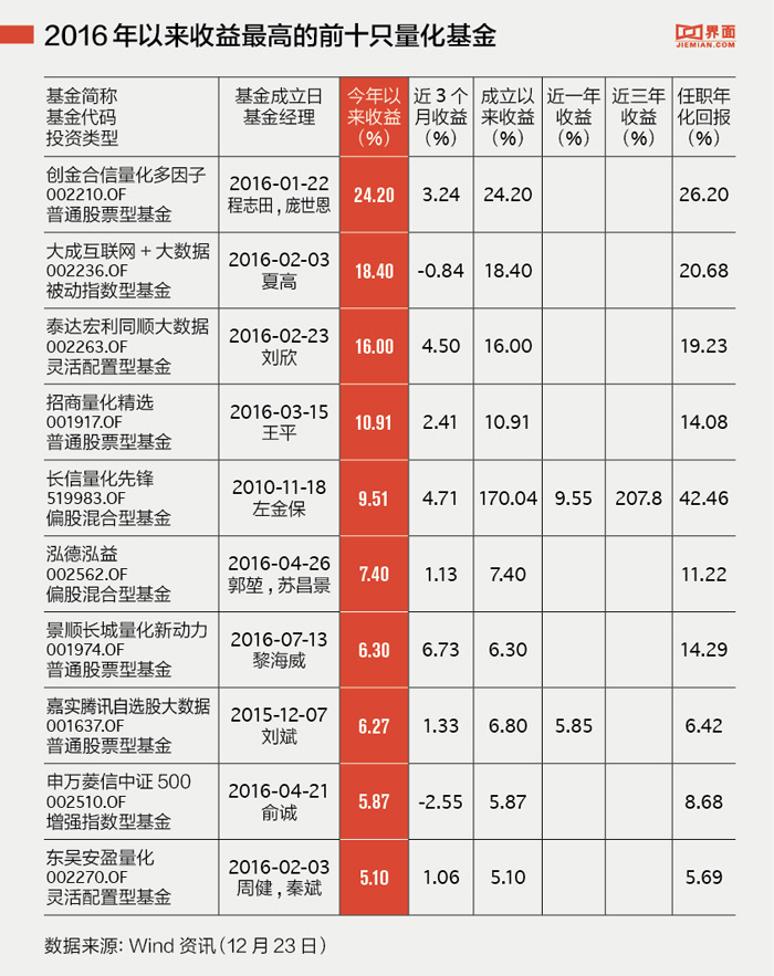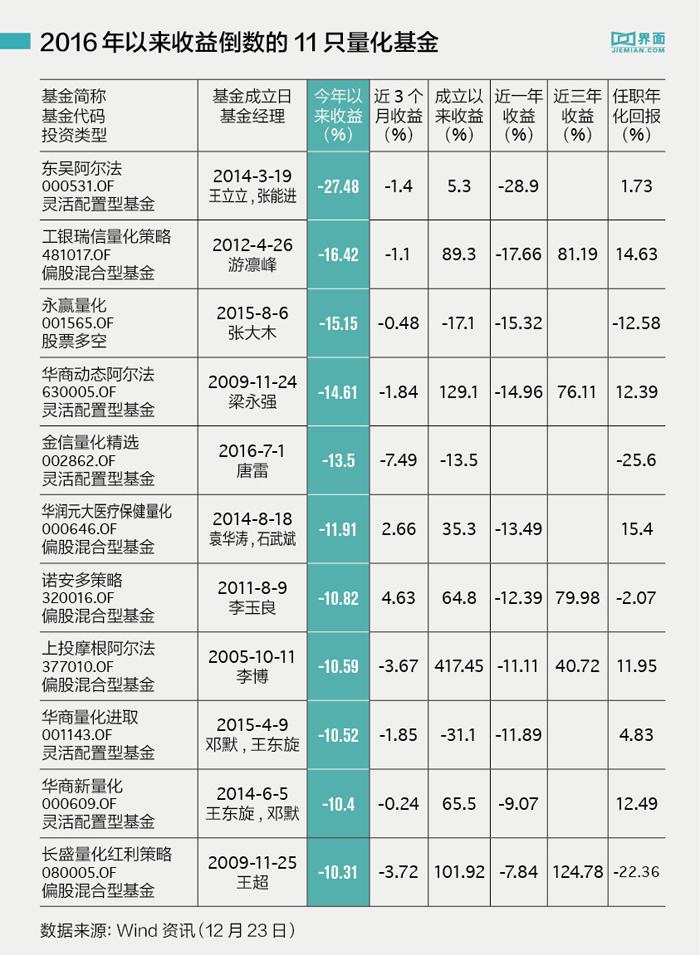 然而,并不是所有量化基金都取得了好收成。下表为今年以来收益倒数的十只量化基金: