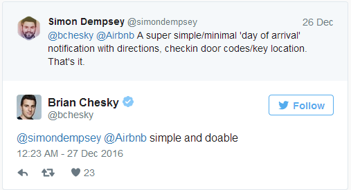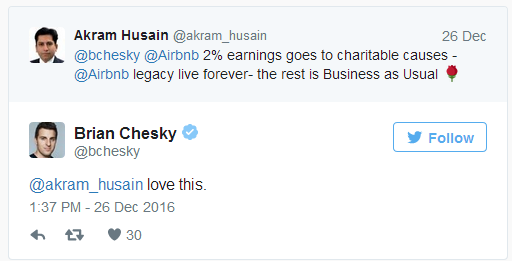 —Brian Chesky (@bchesky) December 26, 2016