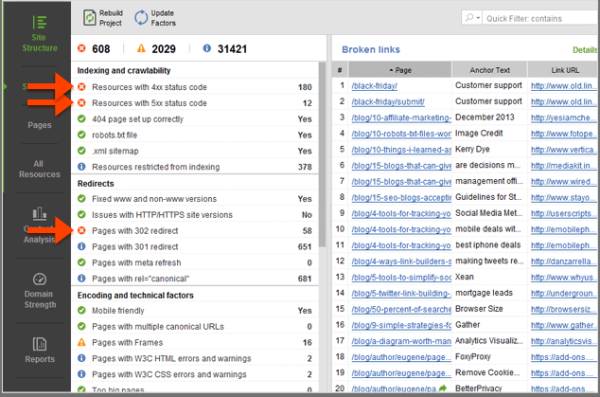 请确保你的网站内容能被搜索引擎获取,并且没有任何重要的网页被索引阻止。同样,你可以通过 SEO PowerSuite 很容易地做到这一点。