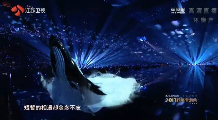 按出场顺序,第一个亮点:音乐诗人李健一边唱,忽地一条大蓝鲸跃起,全场最佳特效给你,憋骄傲。