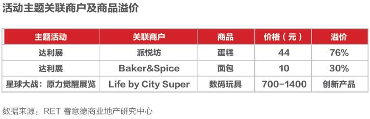 不少商户借助主题活动推出相关商品,吸引粉丝购买,而商品溢价可超过30%。其中达利展期间,派悦坊达利款特制蛋糕售卖价格达到88 元/ 套(2 个), 高于普通款蛋糕76%。此外,更多的商户选择参与凭展览票根享促销优惠的活动,藉此商机营销。