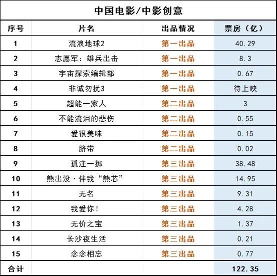 相较去年成绩,今年中影的主控项目数量、表现有明显提升,而参与出品的项目数量也有大幅度的增长。