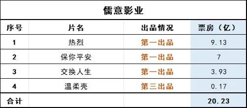 而随着资本层面的交割,接下来将绑定“接盘”万达电影的儒意也有望在明年继续保持领先身位。