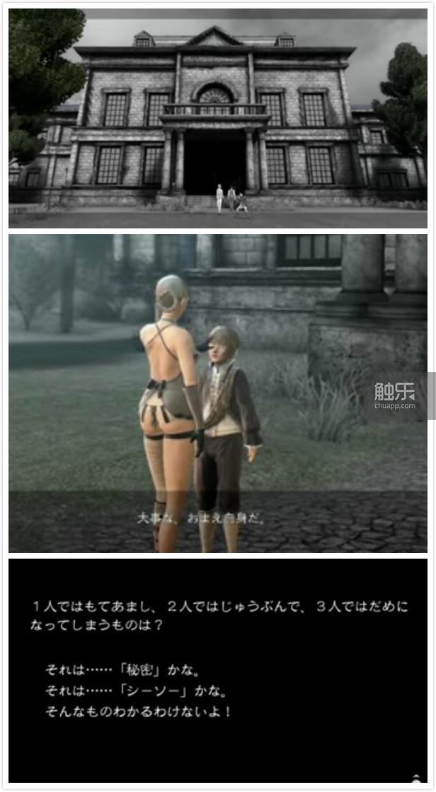 (上图:致敬了《生化危机》,连里面的镜头设置都一模一样;中图:衣着暴露,但却有悲伤理由的“女”主角;下图:突然之间变成猜谜游戏AVG的某任务,并且还相当长)