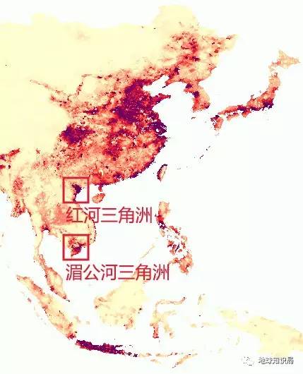 东亚东南亚人口分布——红河三角洲、湄公河三角洲