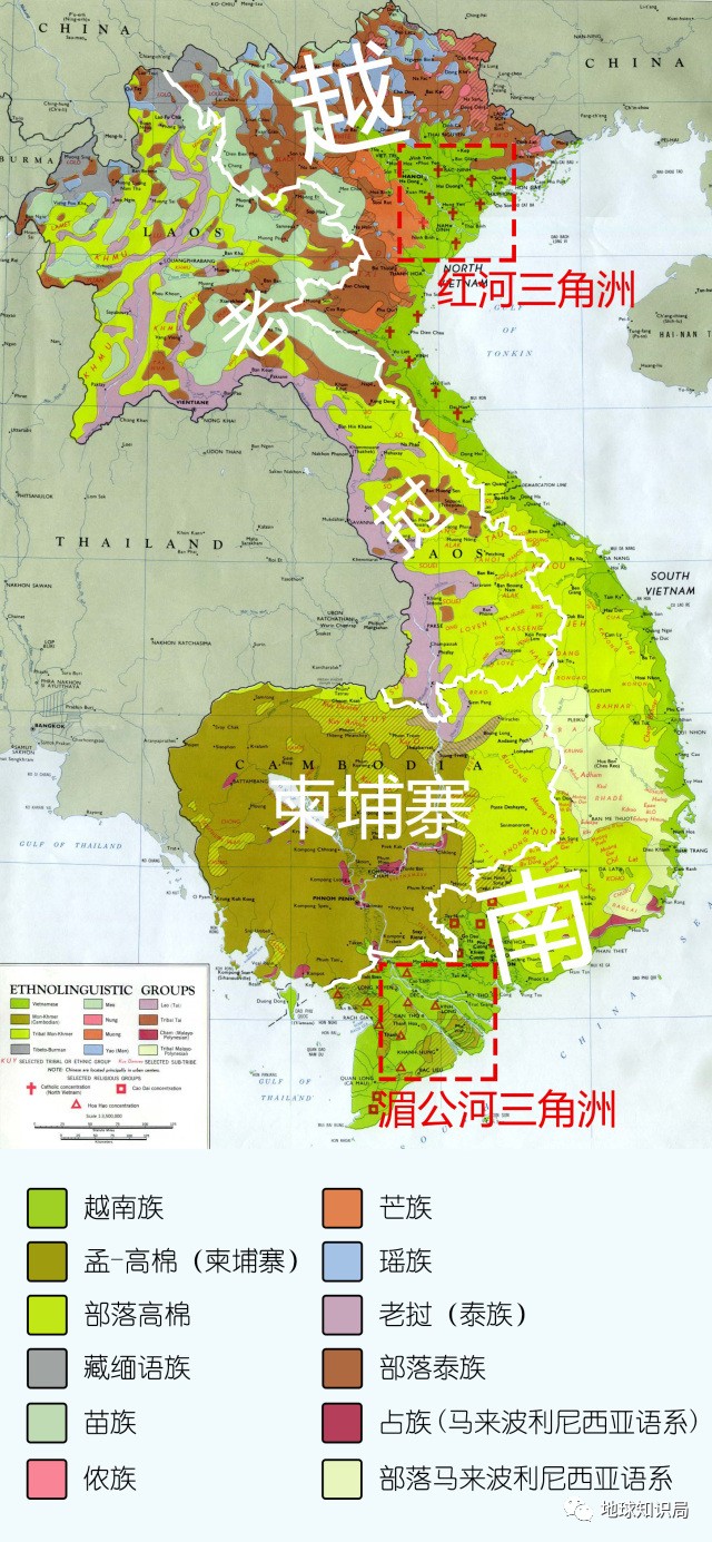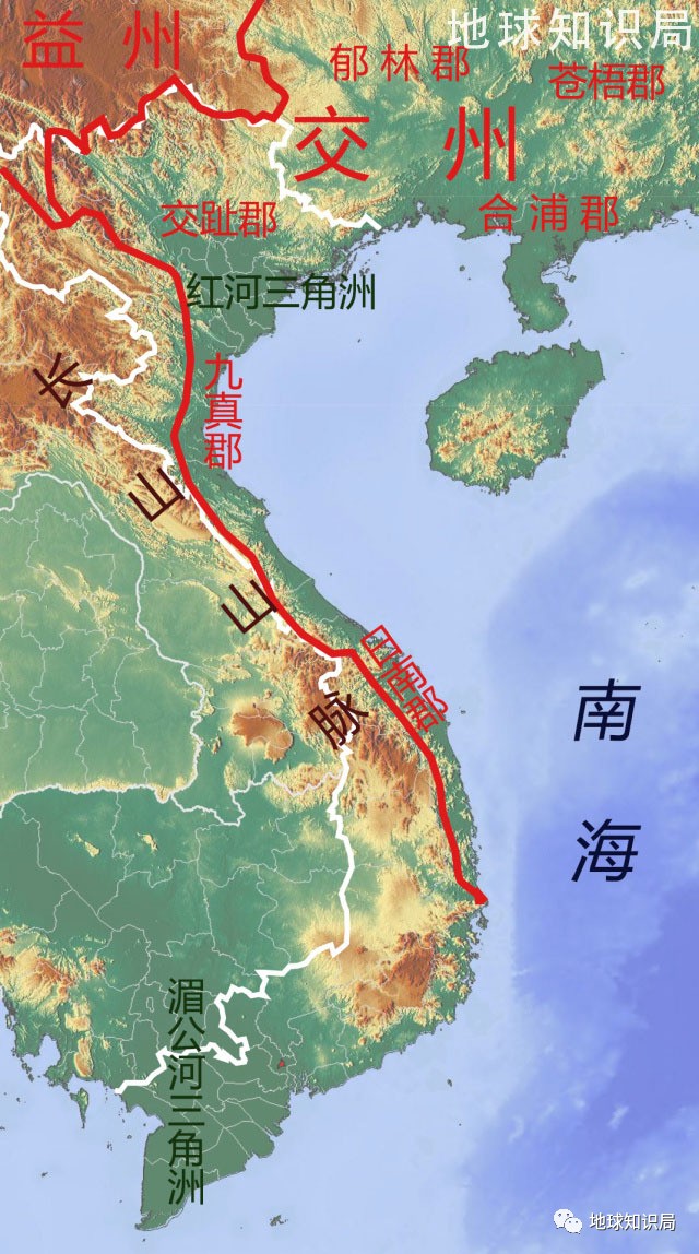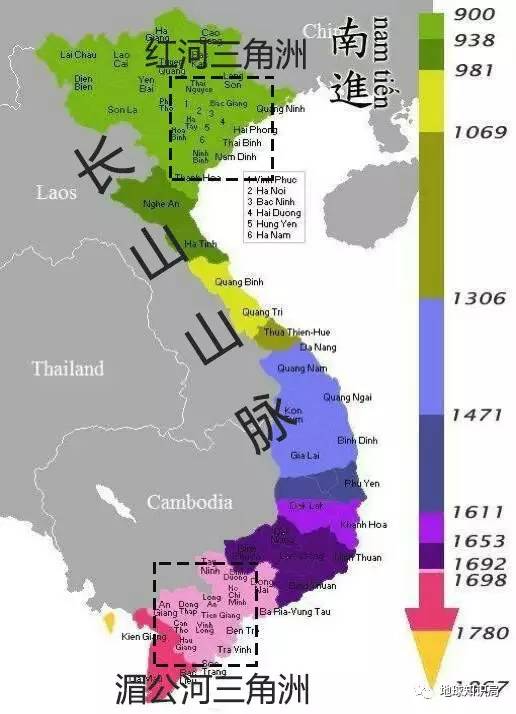 越南的地理位置其实颇为尴尬,长山山脉以东颇为狭窄,其南北两大核心区又相互远离。由于与中华文明长期博弈所获得的先发优势,使其成功击败高棉人并占据湄公河三角洲,由于殖民与海权时代的来临,打断了越南人在陆上继续扩张的进程(向柬埔寨、老挝扩张,即侵入高棉人的核心区以及跨过长山山脉)。