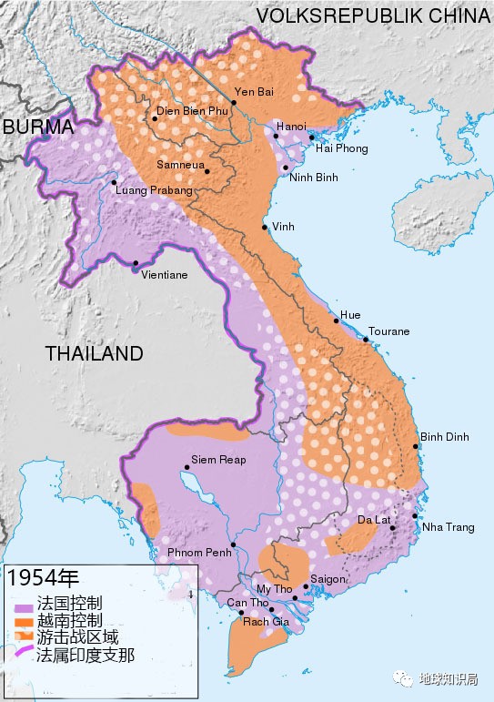 二战之后,法国重回印度支那,扶植阮朝末代君主保大帝作为傀儡。但是此时的越南局势风起云涌,中国驻军、法国人、地方实力派等各方力量相互牵制。法国重回越南建立殖民统治遭到以越盟为首的激烈反对。历经9年抗法战争,在新中国给予大量支持情况下,在奠边府战役中取得决定性胜利,迫使在1954年,苏、美、中、英、法五国在日内瓦召开和平会议,法国撤出越南。