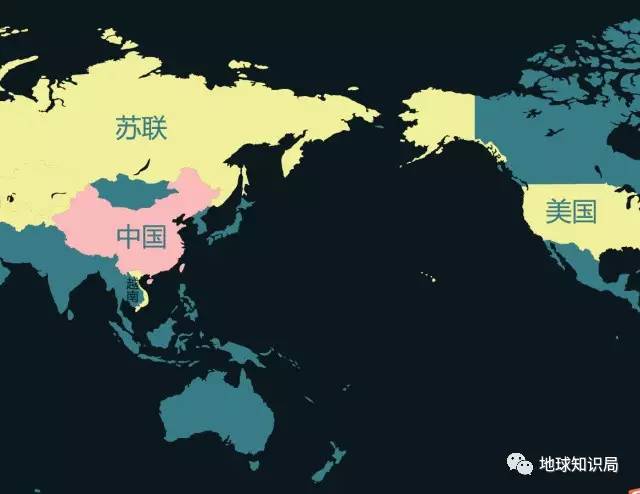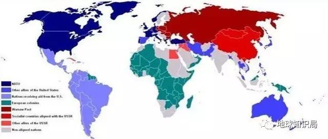1949年世界局势。红色为社会主义阵营,蓝色为资本主义阵营,看似是亚洲大陆一片红,实则,苏修帝国主义即将成为比美帝更严重的敌人。
