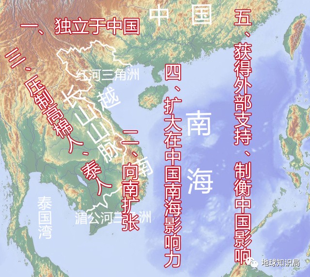 总结起来,越南的历史进程就是努力摆脱北方强大邻居的控制,在东南亚不断开疆拓土,这一战略奠定了越南今日的版图,但是也在越南人骨子里形成了对中国的恐惧感。