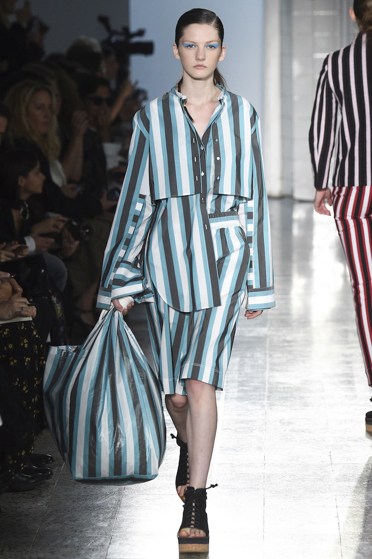 不对称元素单品势必随着它在春夏秀场上高频次出现而持续升温。从3.1 Phillip Lim 2017春季成衣的不对称挖剪,到JW Anderson和Ports 1961春夏的不对称上衣与不对称下摆裙都是秀场上的亮点。还有Jacquemus从2016春夏秀场开始就将不对称元素搬上秀场到2017春夏秀场更是延续了这一不对称风潮。甚至在一些品牌2017早秋系列中都可以看到不对称元素的身影。