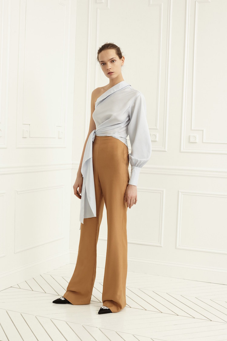 不对称上衣作为新一季的流行单品将取代上一季各大高街品牌都已经出了千百款的一字肩上衣。简单点来说,现在露一个肩膀可能比去年两个肩膀齐露显得更为时髦。单肩的上衣或者衬衫一定是这一季的Must-have,不过似乎也有不少的教你拿着现有衬衫DIY一件不对称上衣的网络教学视频可以尝试拿着现有衬衫单品自己动手做一件。