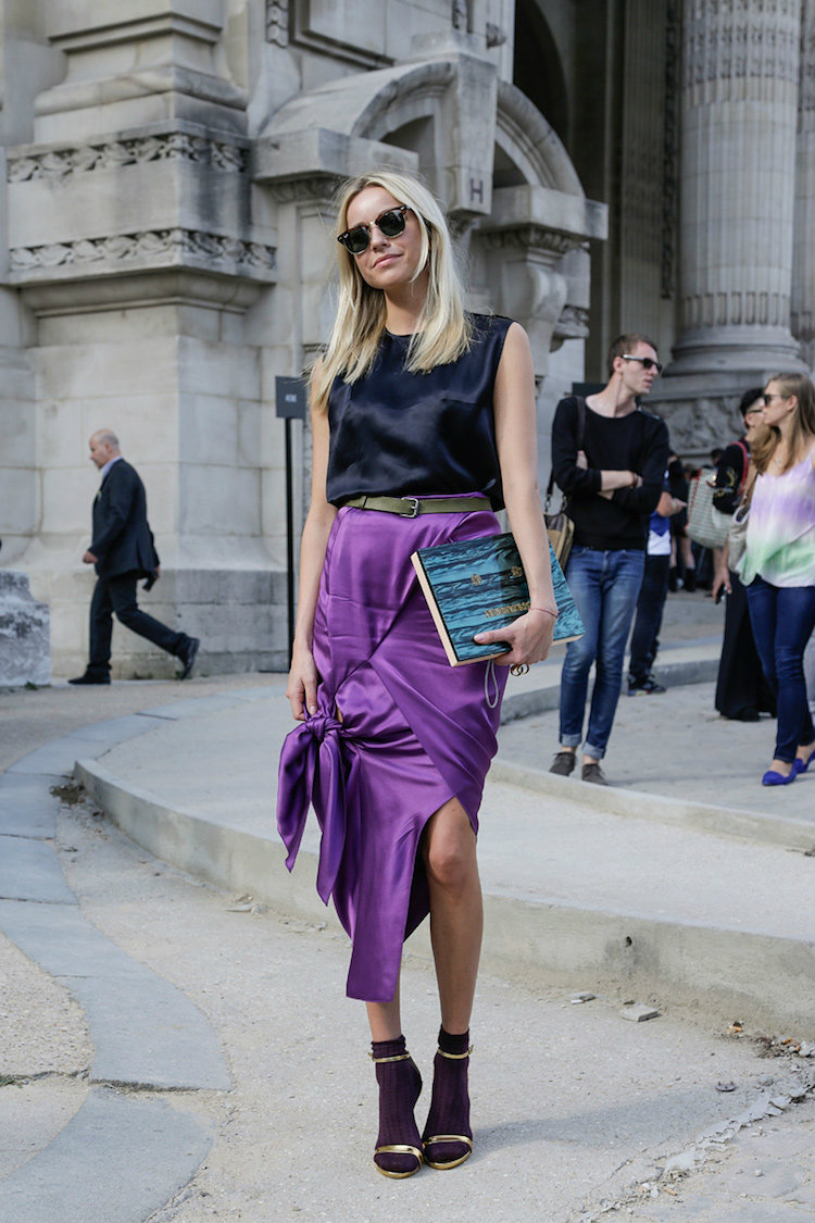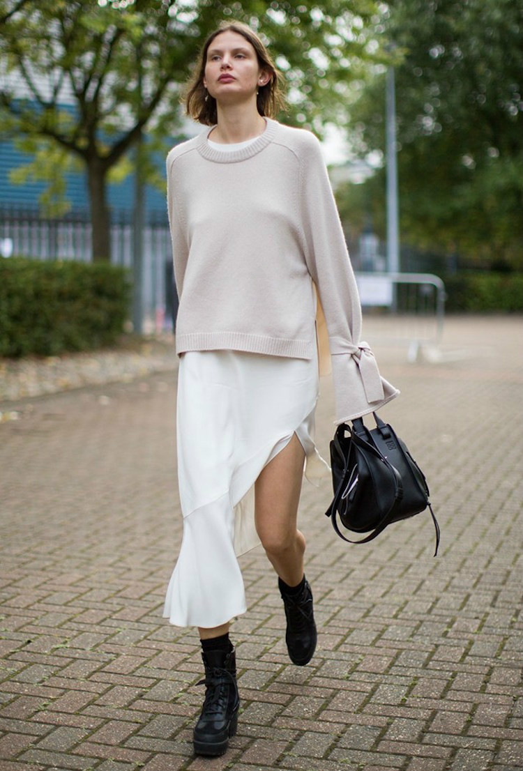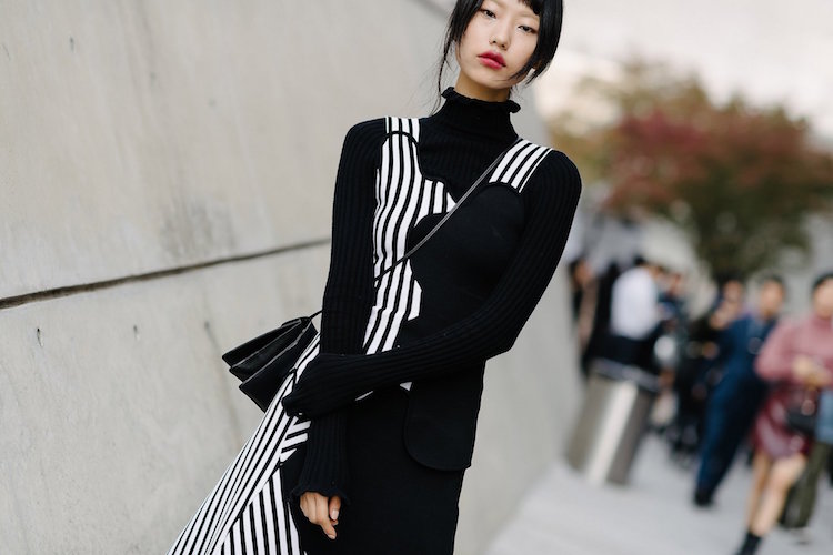 如果想将将秀场上的不对称元素穿入现实生活中,不如参考下街拍中的姑娘们是怎么穿搭的吧。