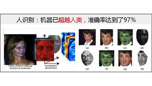 - 感知技术的突破:机器学习和语音、图像先结合,大大提升了自然语言能力、以及图像图识别能力。语音识别方面,机器的语音识别正确率已经达到了90%。图像识别方面,利用深度学习算法再次提升了图像识别的准确率,如Facebook的DeepFace人脸识别达到了97%,已经超过了人类,Facebook每天也有数亿张照片运用此技术进行在线图像识别。