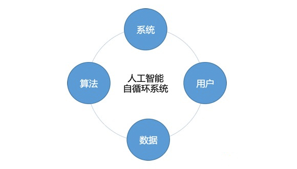 而人工智能系统放弃了迭代式系统的想法,是自我学习的系统,用户使用系统产生数据,数据+人工智学习算法对模型进行优化,模型整合成系统把功能提供给用户,用户使用过程中又将产生数据,整个系统实现自我循环,自循环的过程将是系统不断学习和提升智能的过程。
