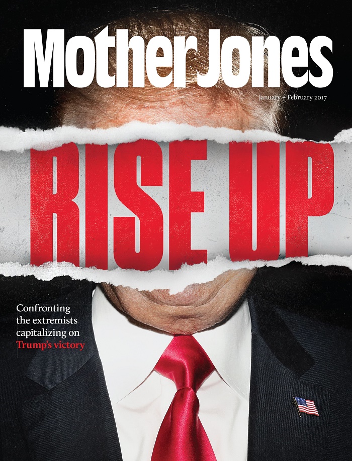 (中文大意)“站起来!对抗那些因特朗普获胜而洋洋得意的极端分子!” 《琼斯妈妈》1月&2月合刊