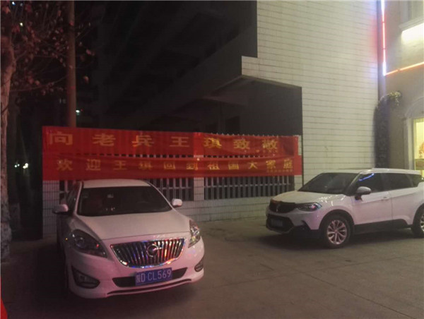 老兵王琪乘坐飞机今天下午抵达咸阳后入住在咸阳梦桃实业天隆泾河湾酒店,酒店离王琪母校咸阳市渭城中学仅一路之隔。