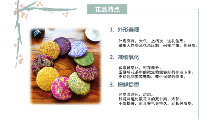 死寂的严冬刚过去,大家都充满了对春意盎然又色彩鲜艳的美好事物的向往,于是花草茶又开始出现在各个白领的办公桌上。我们发现了一些不太一样的花茶,20来块钱一饼,电商销路奇好,添加各种花,据说兼具美貌与减肥养颜之功效。这是怎么一回事呢?