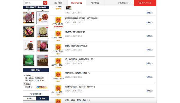 正因为这些描述和超鲜艳的色彩冲击,加上每一饼只要20来块钱的价格,这些茶饼的销量都还挺不错,购买者多为女性。我们还发现有买家在下面留言说:“太美丽了,买回来一个多月都舍不得喝”……