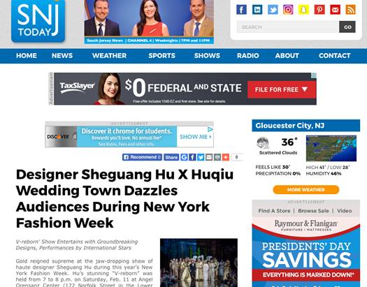 2月11日虎丘婚纱城X胡社光(SHEGUANG HU)纽约首秀一出,艳惊四座,各大国内外媒体争相报道,世界知名网站Pinterest更是将胡社光的设计称为:“可以穿在身上的艺术。”百分之百肯定了其在设计以及艺术层面上的造诣。