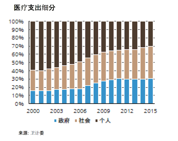 赵冰称,2009年以来的医改政策已建立起全面覆盖的医保体系,在此过程中政府支出也成为了医疗行业增长的驱动力。医药行业因此在2011-2015年实现了15%的年收入增长。
