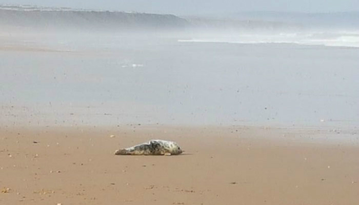 我的狗之后把他们都赶走了。英国防止虐待动物协会及时赶了过来,给了小海豹一些吃的。小海豹现在还好,就是特别害怕特别累。