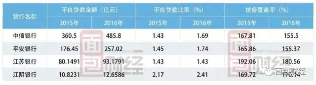 事实上,已公布年报的A股4家上市银行中,只有江苏银行的不良贷款率持平,其它3家银行均出现上涨;而在拨备覆盖率方面,有三家银行下跌,中信银行和平安银行更是逼近150%的拨备覆盖率监管红线。