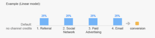 线性归因:为每个触点分配相同的权重,展示所有触点的贡献。