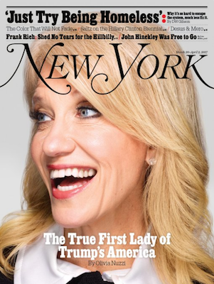 在《纽约杂志》三月刊的封面故事中,康韦被称为“美国的职能第一夫人”(functional first lady of the United States),《纽约杂志》这样形容康韦:一个无处不在的总统的女性化身,她是特朗普意志的延伸,她比任何人都更加卖力地效力于特朗普。