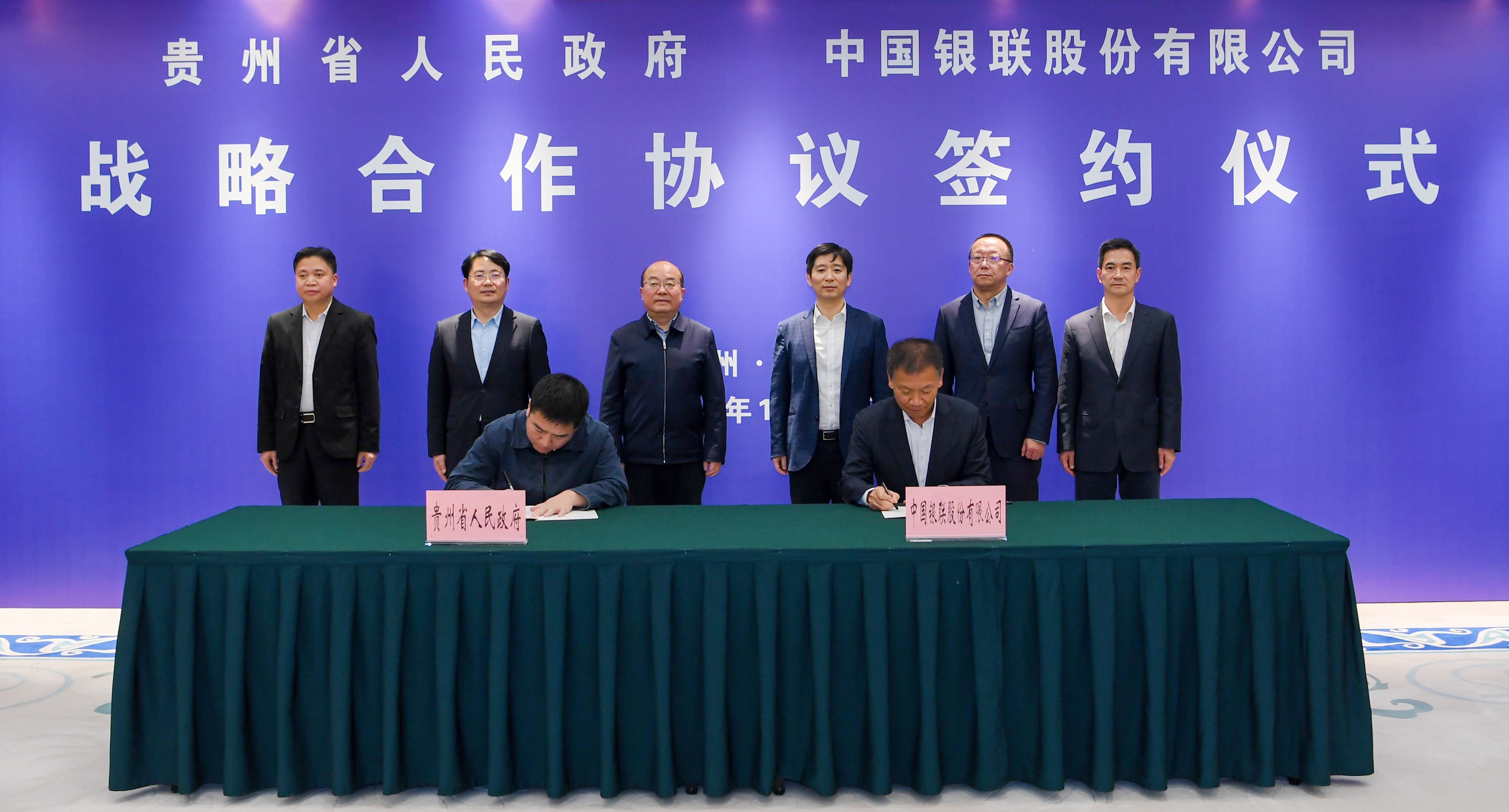 中国银联积极发挥银行卡转接清算机构作用,与贵州开展更广领域、更深层次合作。12月5日,贵州省人民政府与中国银联签署新一轮战略合作协议。在贵州省委 常委、常务副省 长吴强与中国银联党委副书记、总裁郭大勇的见证下,贵州省人民政府副秘书长徐刘蔚与中国银联执行副总裁胡浩中代表双方签约。