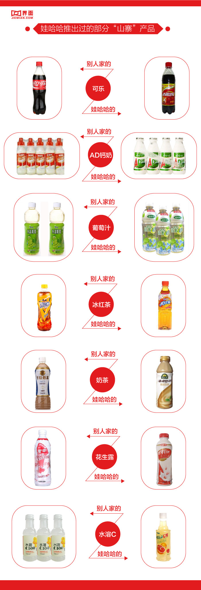 知乎上一位叫汪维的用户曾列举了娃哈哈曾经模仿的几款经典产品。他在文中调侃预测,市面上什么新饮料卖得还可以味道也还行,娃哈哈90%可能性都会出同款。因此,娃哈哈在业内还有个外号叫 “饮料界腾讯”。