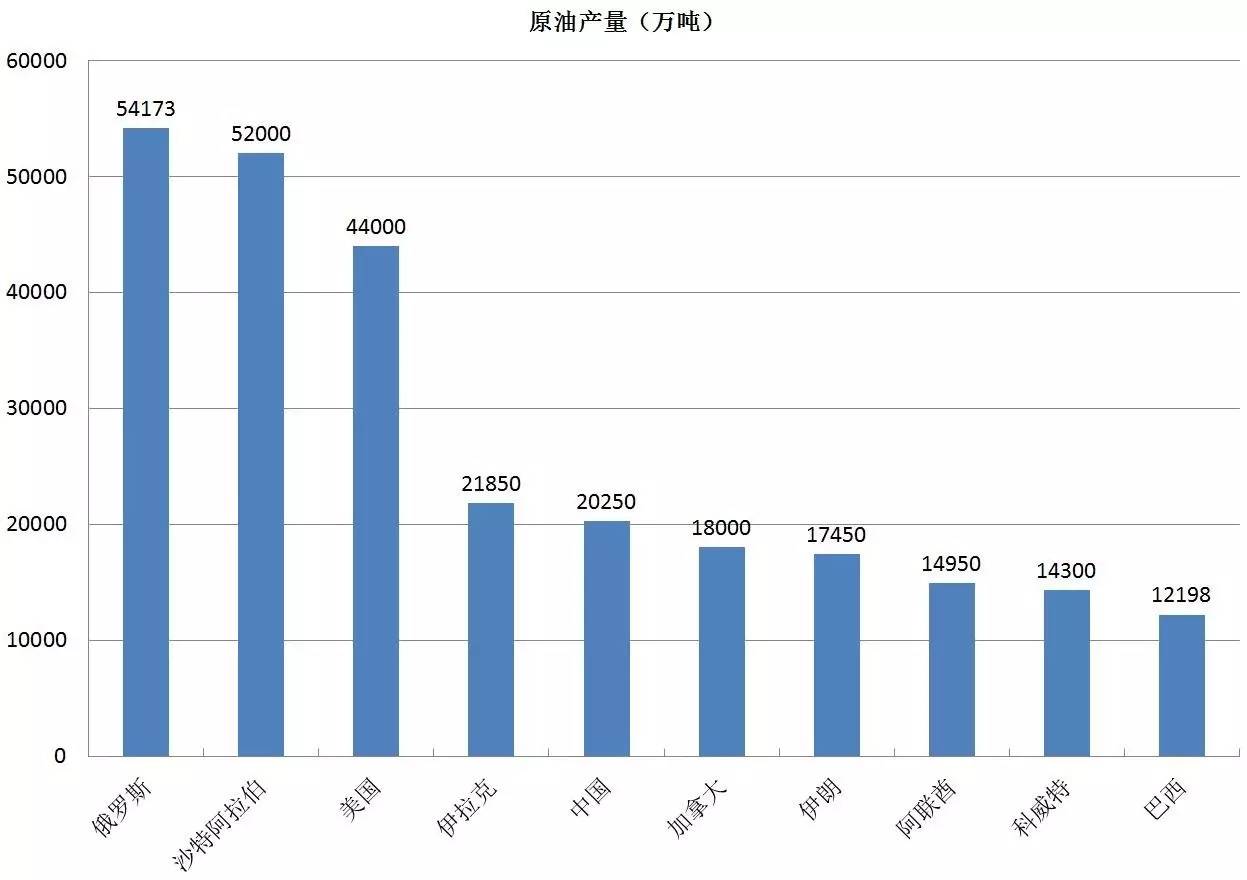 而石油储量高居全球第一的委内瑞拉,其产量跌出全球前十,以11250万吨的产量位居第11位。