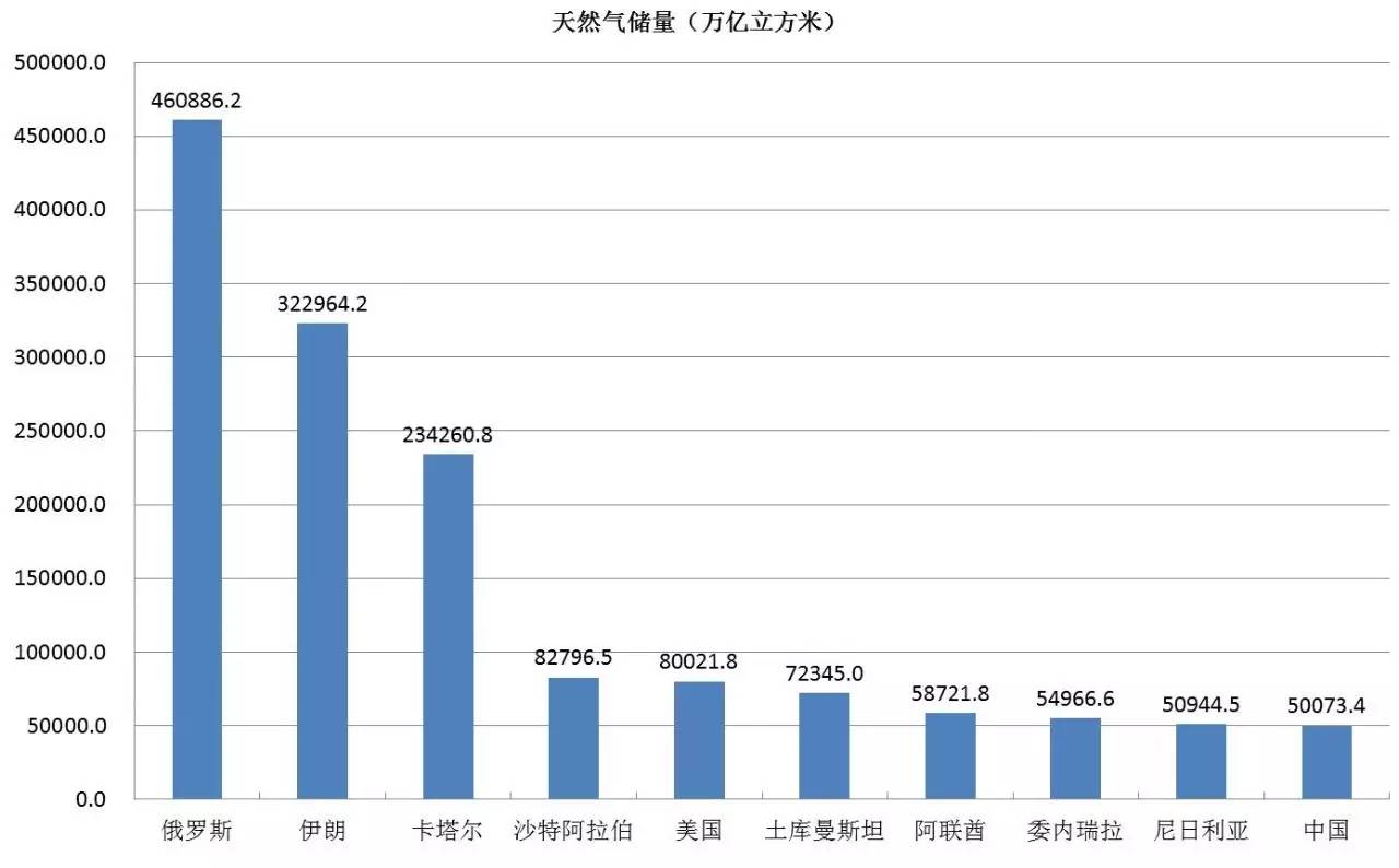 天然气储量排名(剩余探明储量)