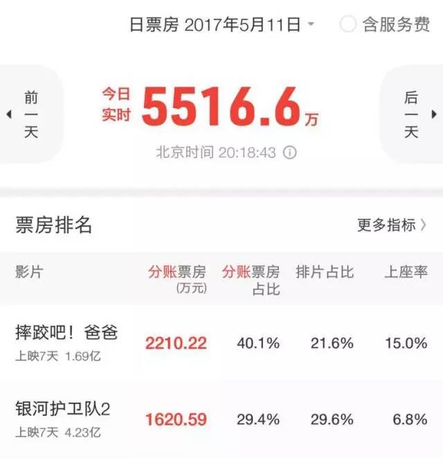 5月10日起,印度电影《摔跤吧!爸爸》国内市场票房开始赶超好莱坞大片《银河护卫队2》,这种逆袭持续到11日。事实上,即便是在刚上映之时,前者虽然排片有限,但上座率远超过后者,随着这部印度电影口碑发酵,出现领先局面是意料中的事。