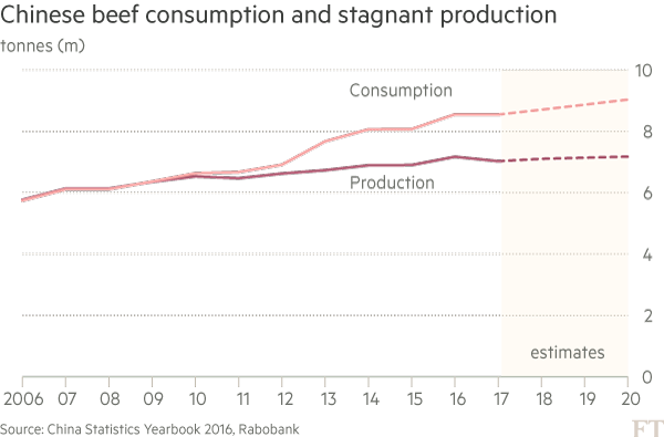 一些中国进口商告诉英国《金融时报》,他们很乐意尽快开始采购优质的美国谷饲牛肉。