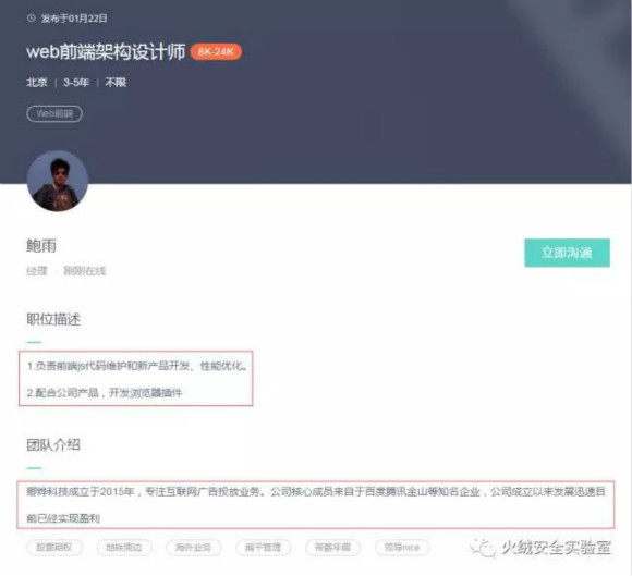 我们还在招聘网站找到了该公司的招聘信息,如下图所示: