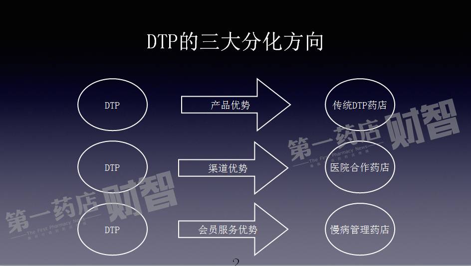 DTP的本质是一种商业模式的变化:变过去的零售模式为精准模式。传统的模式是医和患,处方药的经营模式就是围绕着一个环节:搞定医生。而现在的模式变为以患者为中心,在“医—患—店”的基础上,两边还有企业和保险公司。随着以后多样化的医保,再结合上公益项目,DTP会更加完善。